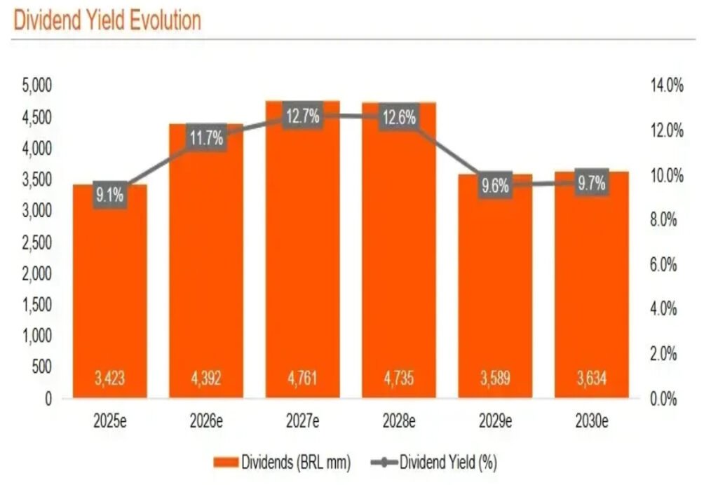 Para 2026, esse valor deve aumentar para R$ 4,39 bilhões, o que representa um dividend yield de 11,7%.